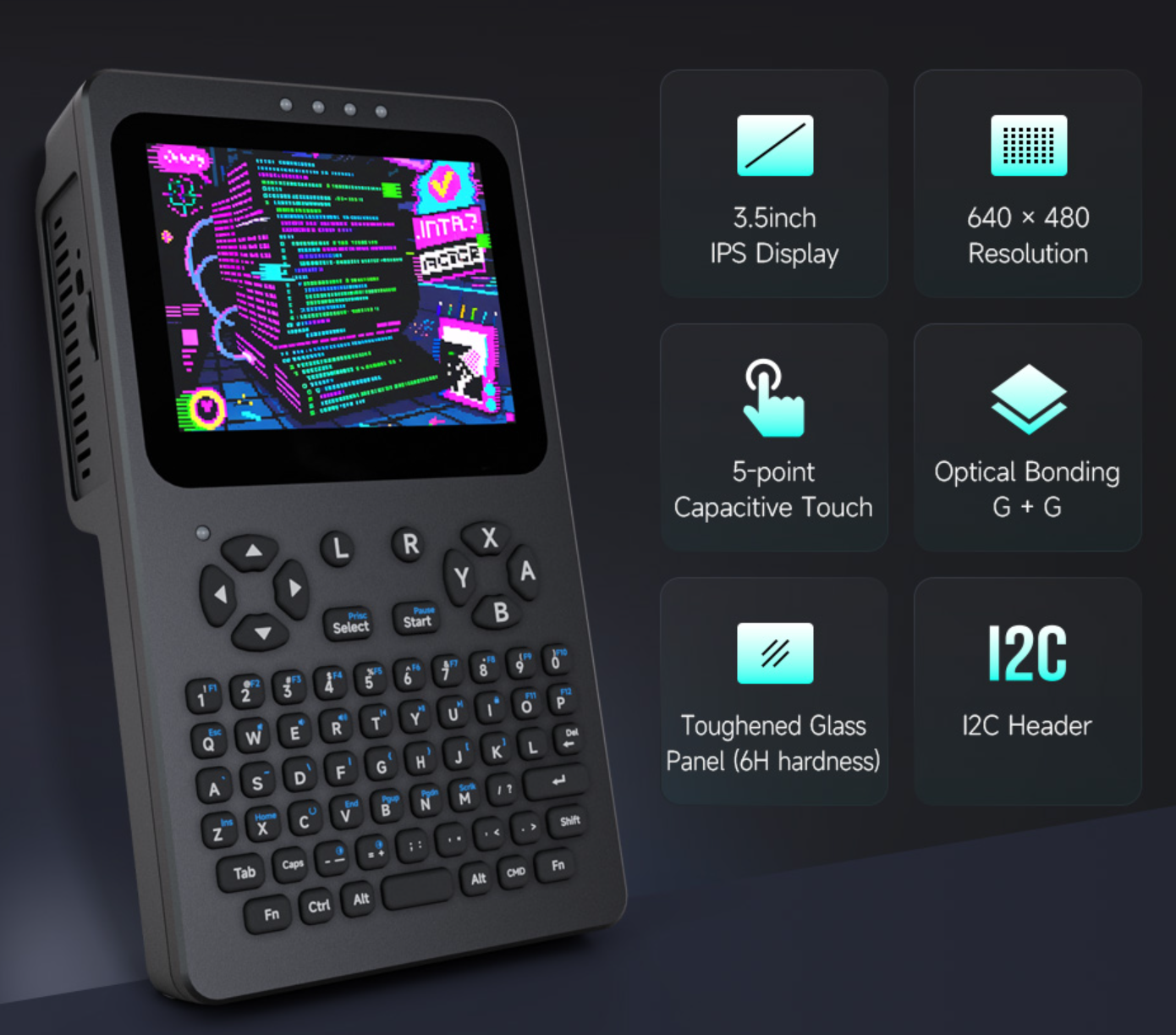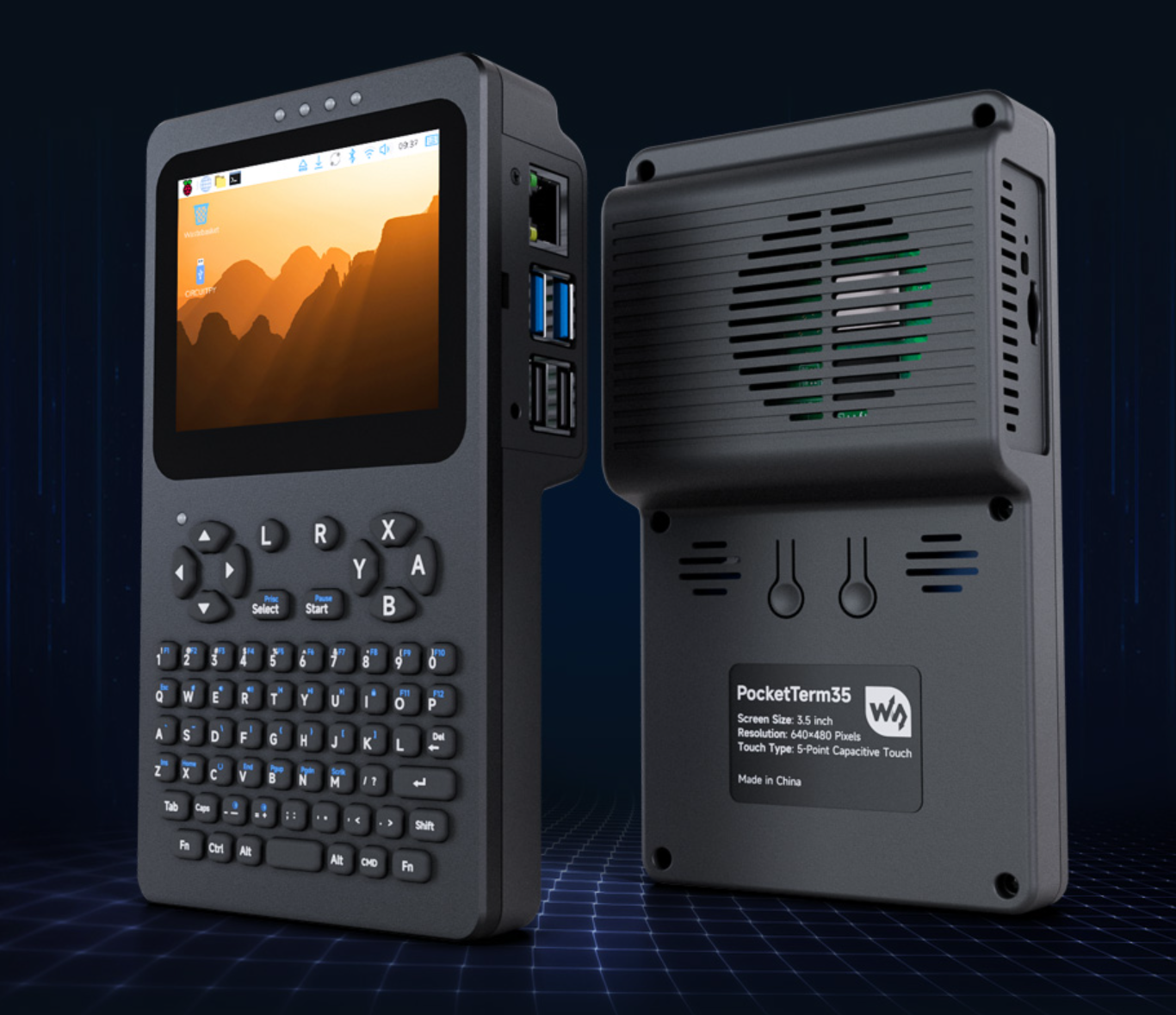 规格方面,该机配备六行键盘,不需要按 FN 键就能输入数字,提供方向键和 ABXY 键,理论上可以玩复古游戏,但硅胶键盘的手感可能不会特别清脆。机身带有 3.5 英寸触控屏,分辨率为 640*480,配备 5000mAh 电池。